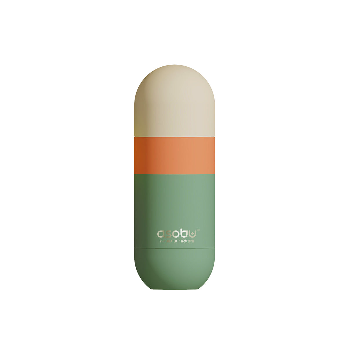 - Its unique shape is sleek and easy to carry, with a twist-off cap that also functions as a cup.