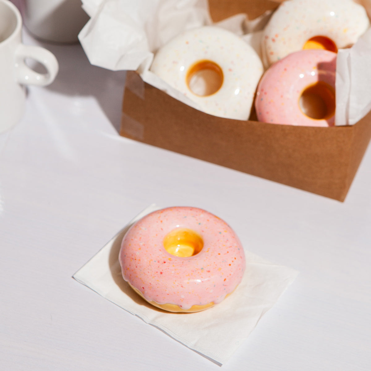 - Add a bit of sweetness to the table with these adorable donut-shaped candleholders.