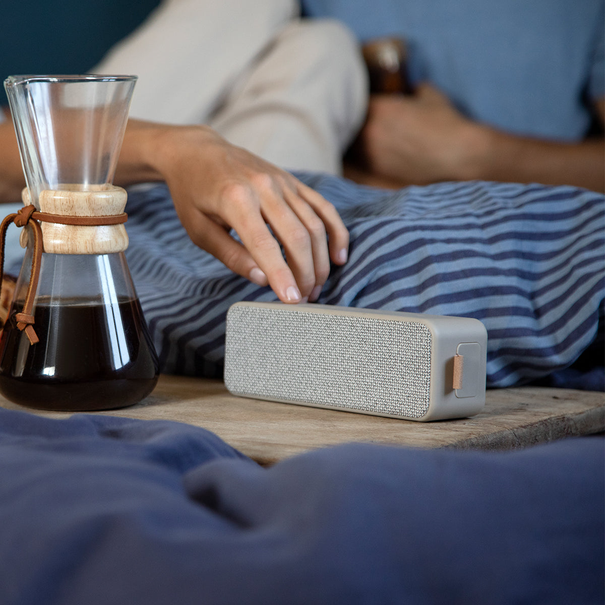 - Place it flat or stand it up – aBOOM delivers music with a punch.
