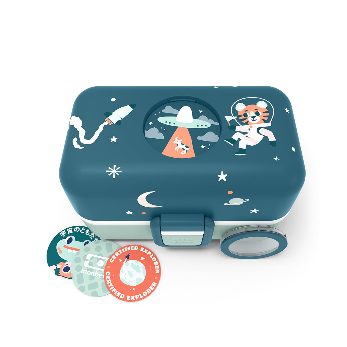 Kids lunchbox with fun prints, food compartments and customisable lid.